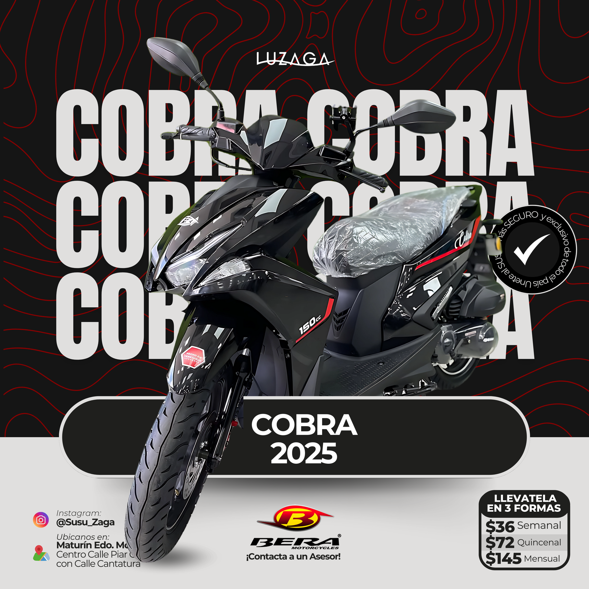 La Bera Cobra 2025 es una moto deportiva de alta gama con un diseño aerodinámico y un motor potente. Con un 25% más de velocidad que modelos anteriores, esta moto promete una experiencia de conducción emocionante y una mayor eficiencia en carretera. Ideal para aquellos que buscan velocidad y rendimiento en una sola moto.