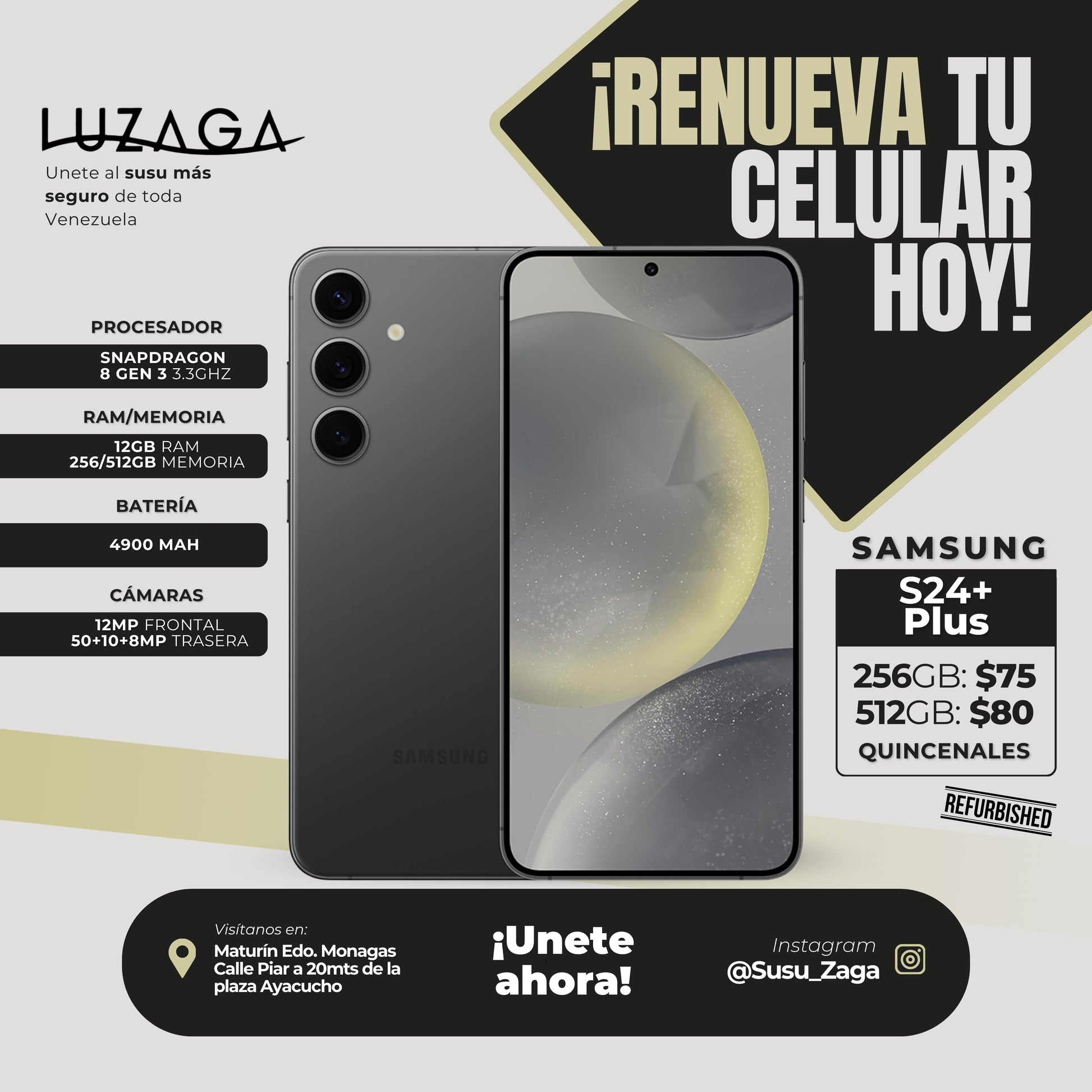 El Samsung Galaxy S24 Plus es un teléfono inteligente de última generación con una pantalla de alta definición y una cámara potente. Su tecnología avanzada garantiza una experiencia de usuario sin igual mientras permite capturar momentos con una calidad excepcional. Mejora tu vida con el Samsung Galaxy S24 Plus.