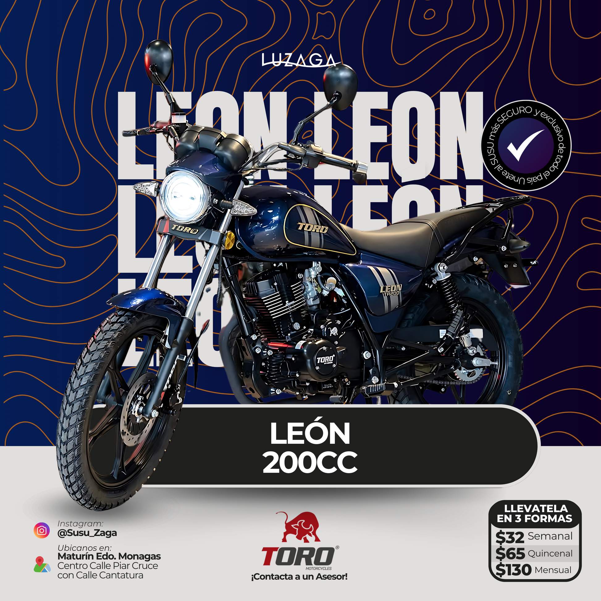 El Toro León 200cc es una poderosa motocicleta con un motor de 200cc que ofrece un rendimiento excepcional y una velocidad impresionante. Con su diseño moderno y robusto, es ideal para aquellos que buscan una experiencia de conducción emocionante y de alta calidad. Disfruta de un viaje suave y seguro con el Toro León 200cc.